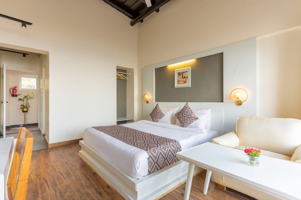 Comfortable wooden cottage-style room of 200 sq. ft., designed for a cozy and relaxed stay amidst nature.