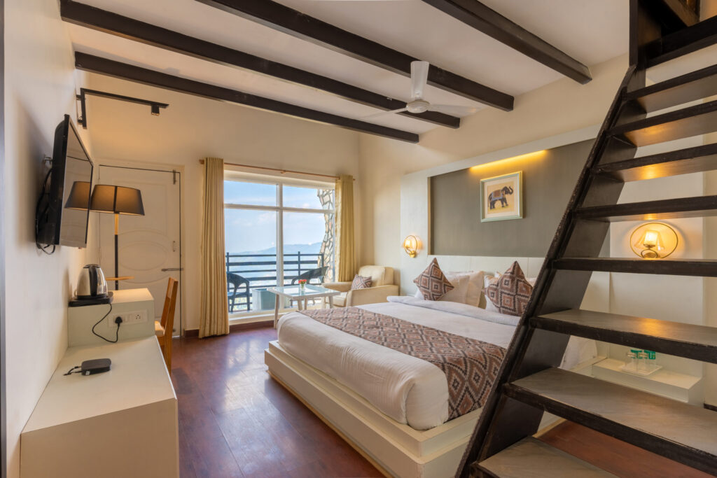 Enjoy the private balcony that opens to stunning Himalayan vistas, a serene space to unwind and connect with nature.