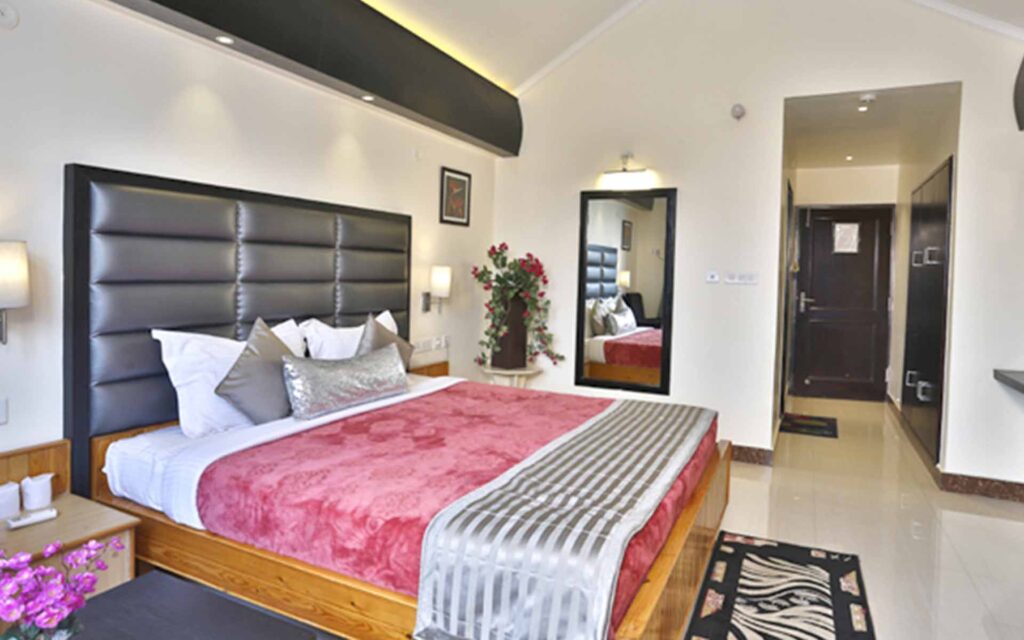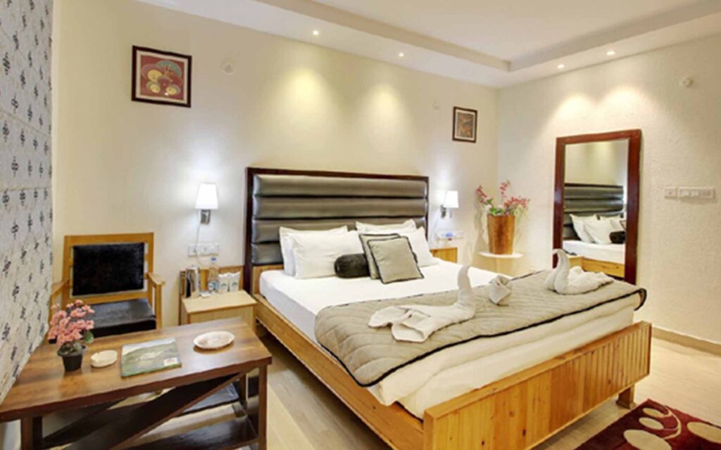 The Club Room at Hotel Harshikhar offers a luxurious 250 sq. ft. space designed to make your stay truly unforgettable. Overlooking the serene Bhimtal Lake, these rooms provide breathtaking views that bring peace and rejuvenation amidst nature’s beauty. Enjoy the comfort of a King Size Bed, air conditioning, and free Wi-Fi, ensuring a perfect balance of relaxation and convenience. With its elegant interiors and tranquil lake views, the Club Room promises a refreshing and memorable stay in Bhimtal.