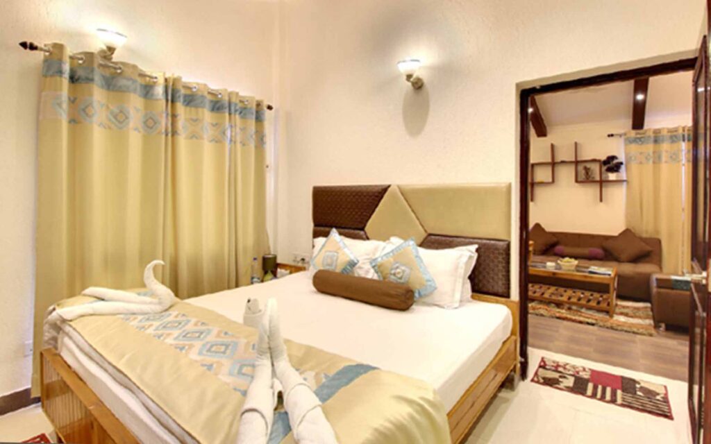 The Executive Room at Hotel Harshikhar offers a spacious 200 sq. ft. valley-facing retreat designed for comfort and focus. Ideal for business travelers or couples, it provides a calm and elegant ambiance with all essential amenities. Enjoy a restful stay with a King Size Bed, air conditioning, and free Wi-Fi, ensuring both relaxation and productivity. Thoughtfully designed interiors and scenic views make it a perfect blend of work and leisure in Bhimtal.