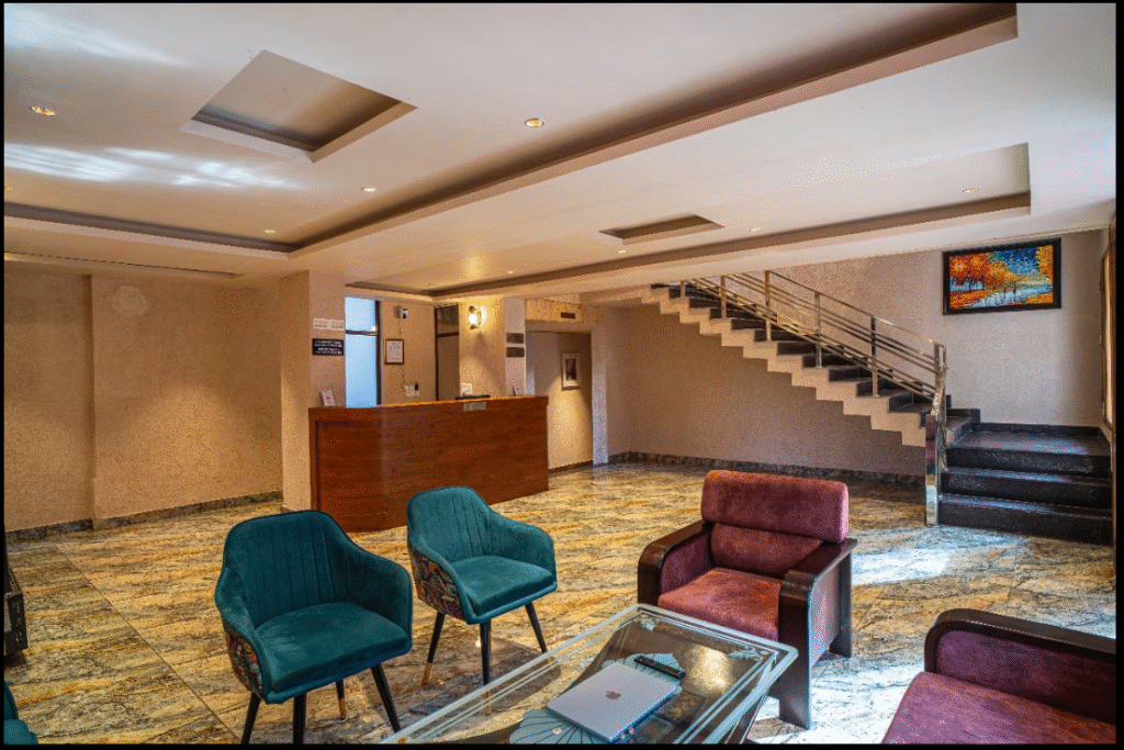 A stylish reception area designed with comfort and charm, ensuring a smooth and pleasant check-in experience.