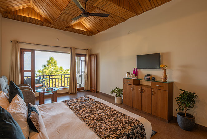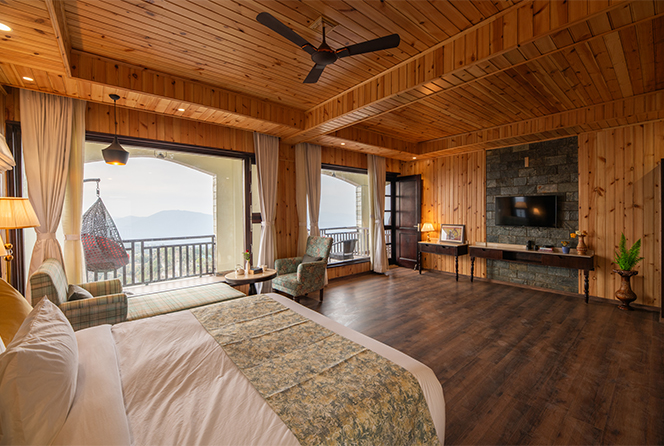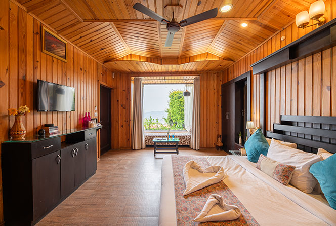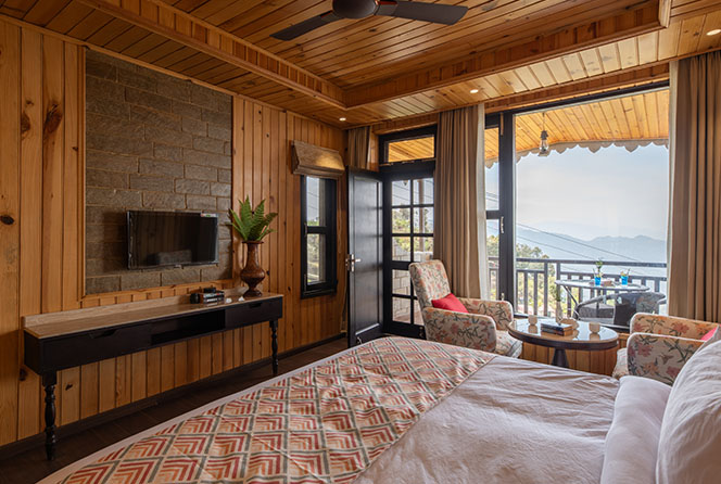 Furnishings : King-size or twin beds, Coffee table and chairs, 48-inch LED TV, Window chair to enjoy the Himalayan view, Refrigerator.